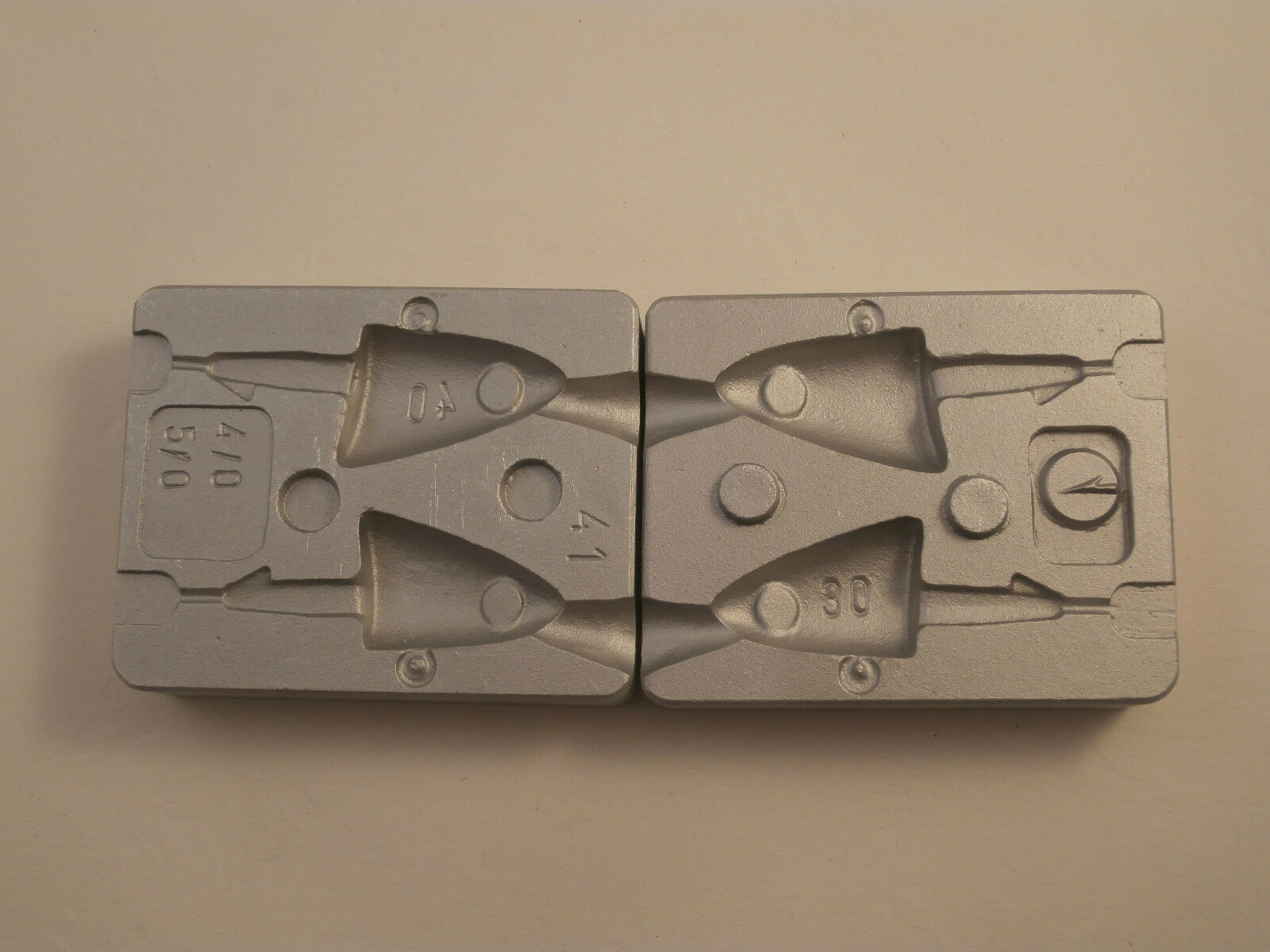 This mould casts 2 perfect  “Fish Head ” jig leads